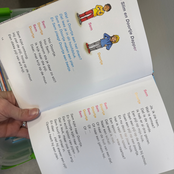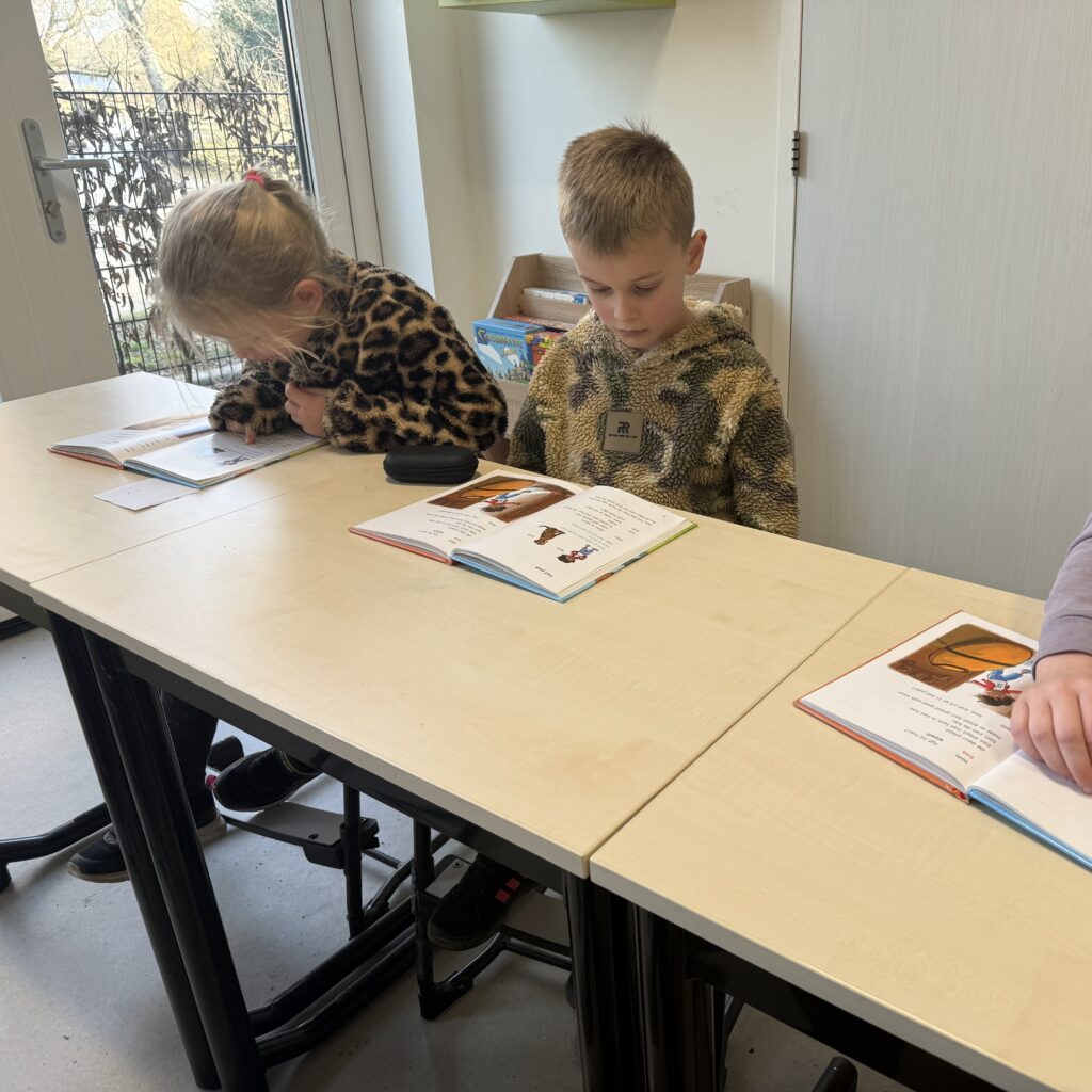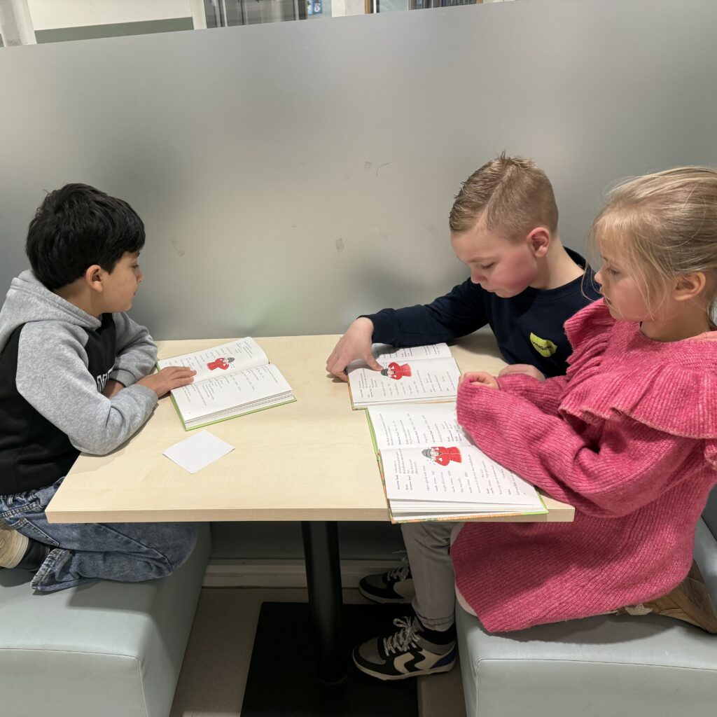 Tot de voorjaarsvakantie zijn wij tijdens het stilleesmoment bezig met ’toneellezen’. Bij toneellezen lezen kinderen samen een verhaal uit een boek. Ieder kind krijgt een rol en leest hardop wat bij zijn of haar rol hoort. Zo lezen de kinderen samen een klein toneelstukje. Tijdens het toneellezen oefenen de kinderen niet alleen met lezen, maar ook met het gebruiken van hun stem. Ze leren hun stem aan te passen aan het verhaal: zeggen ze iets boos of blij, hard of fluisterend? Ook letten ze op leestekens, zoals een vraagteken of een punt. Zo leren ze een vraagzin op de juiste manier te lezen en leren ze even te pauzeren wanneer er een punt aan het einde van een zin staat. Op deze manier leren kinderen met meer gevoel te lezen. Daarnaast zorgt toneellezen ook voor heel veel leesplezier!