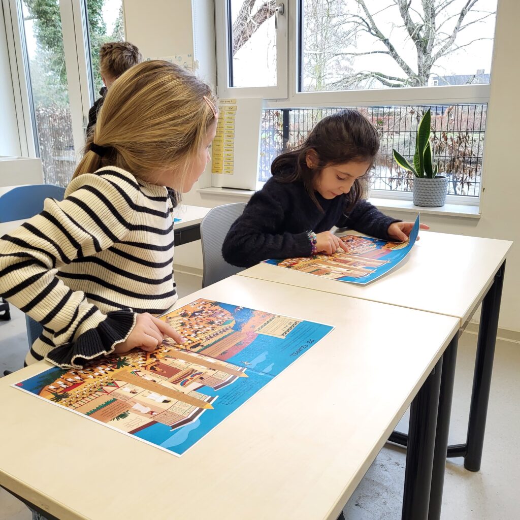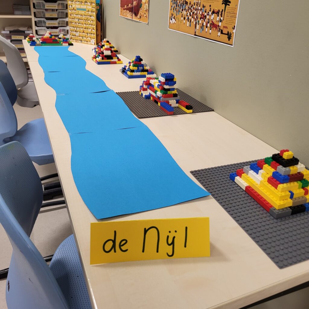 We leerden een Engels liedje over de Nijl en de dieren die in en rond de Nijl leven. Ook leerden we over piramides. We lazen een tekst en hebben daarna met lego een piramide of zelfs een sfinx gemaakt met behulp van een bouwplaat.