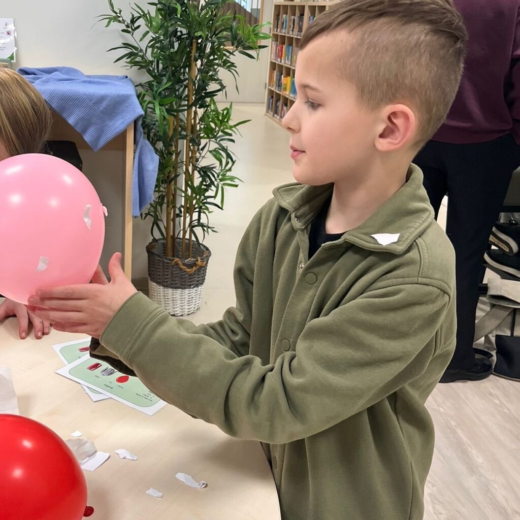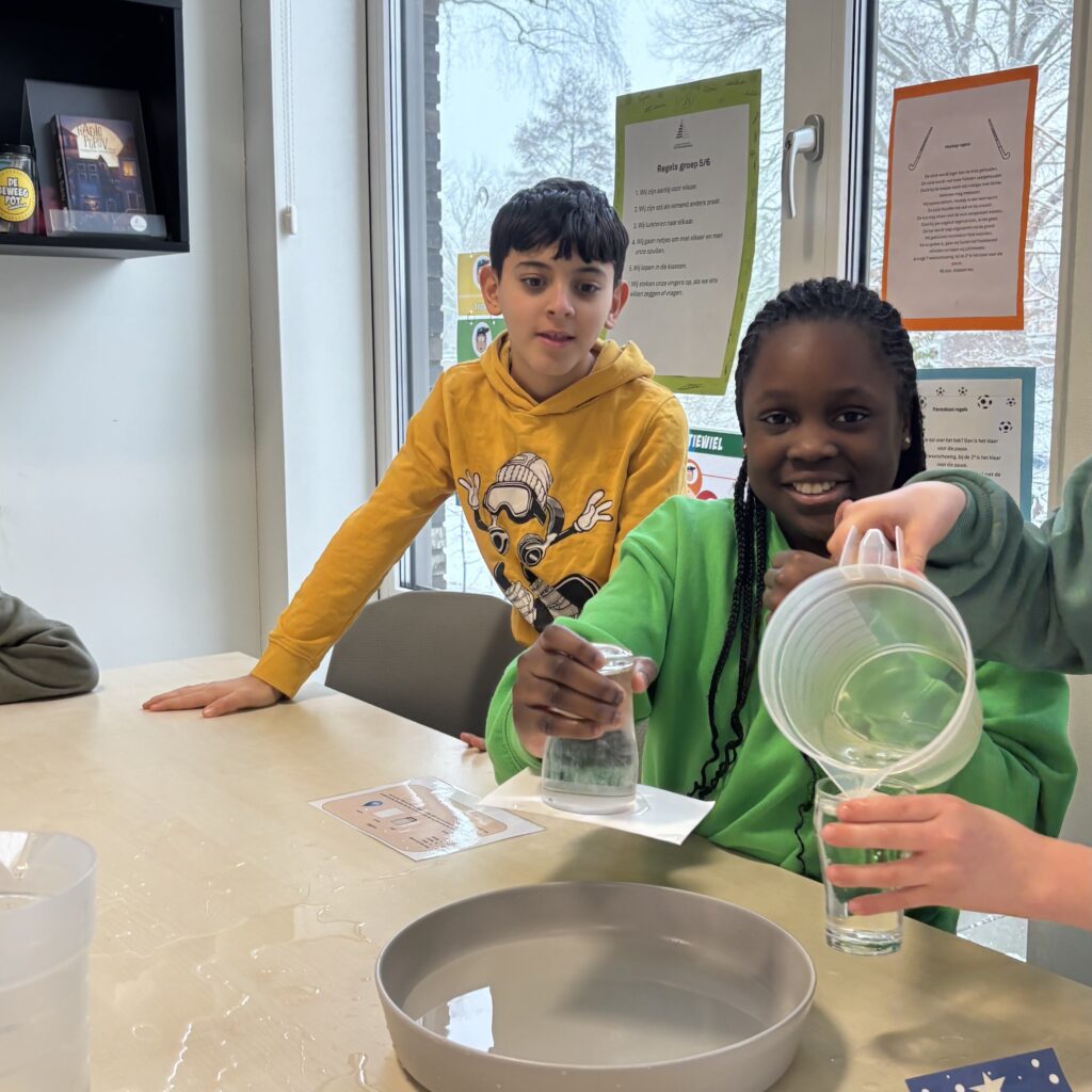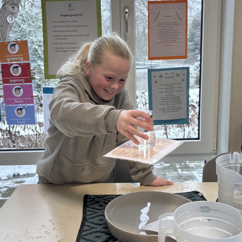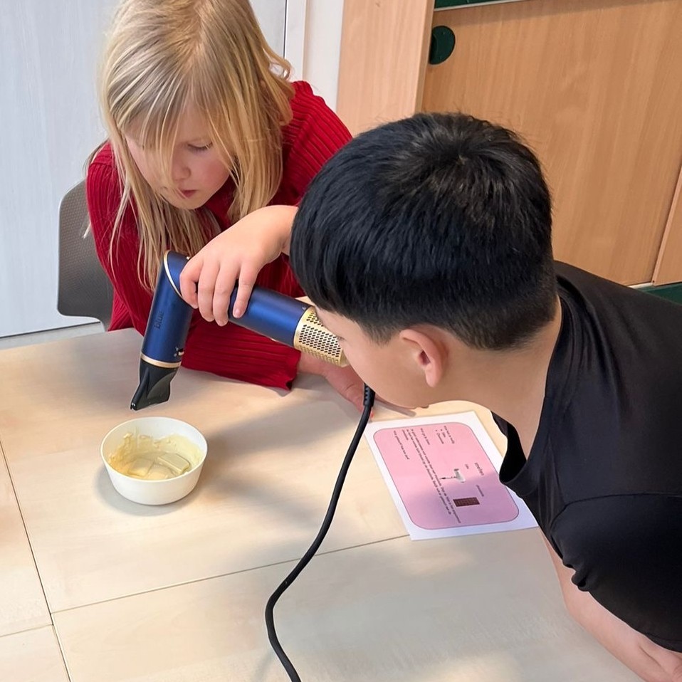 We hebben een proefjescircuit gedaan! Daarbij ontdekten we dat chocolade smelt door warme lucht, dat rijst kan dansen door geluidsgolven, dat een kaart kan blijven plakken aan een glas water, dat lucht door druk dichter op elkaar komt en dat een statische ballon papiertjes kan verzamelen.